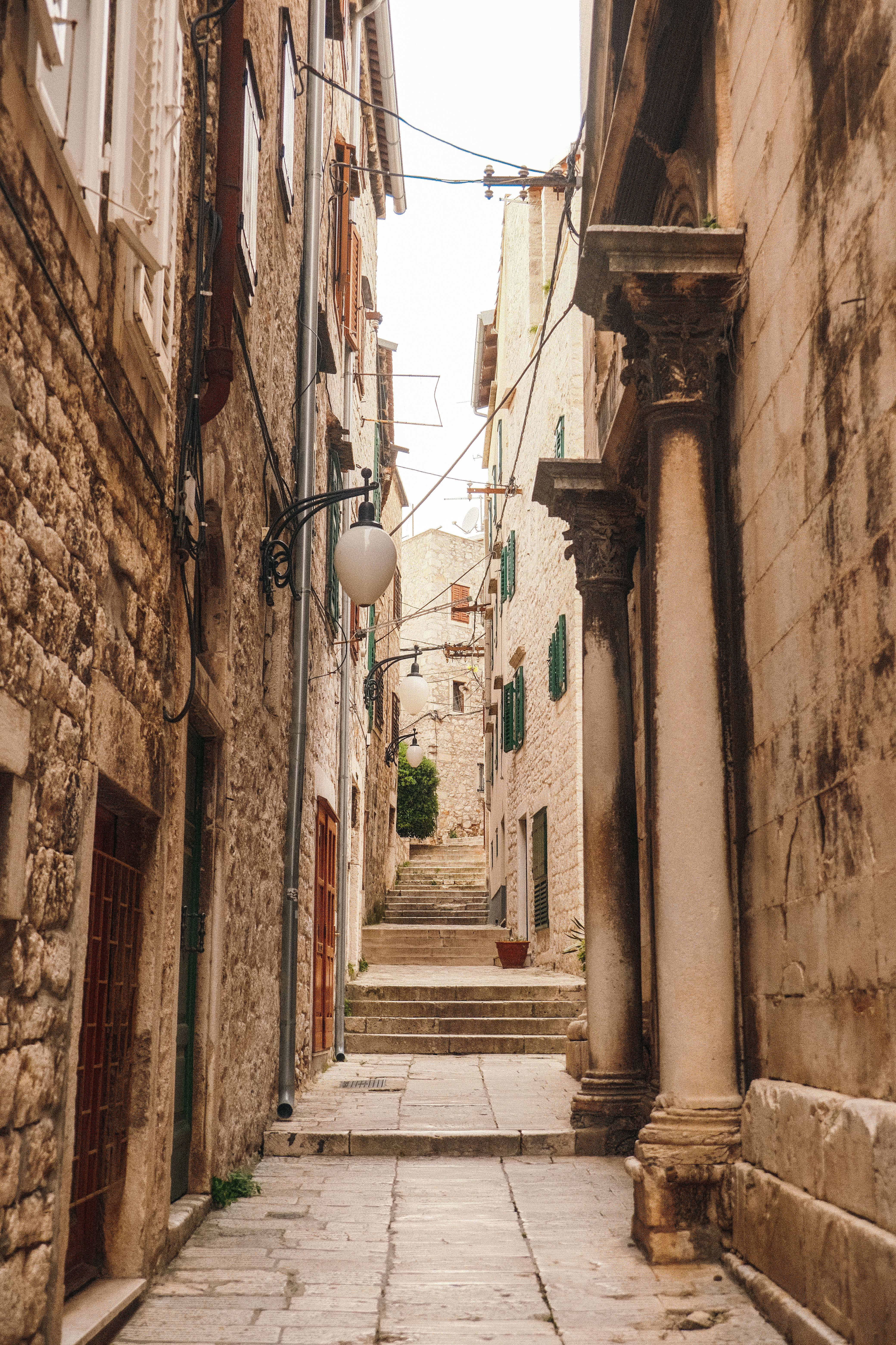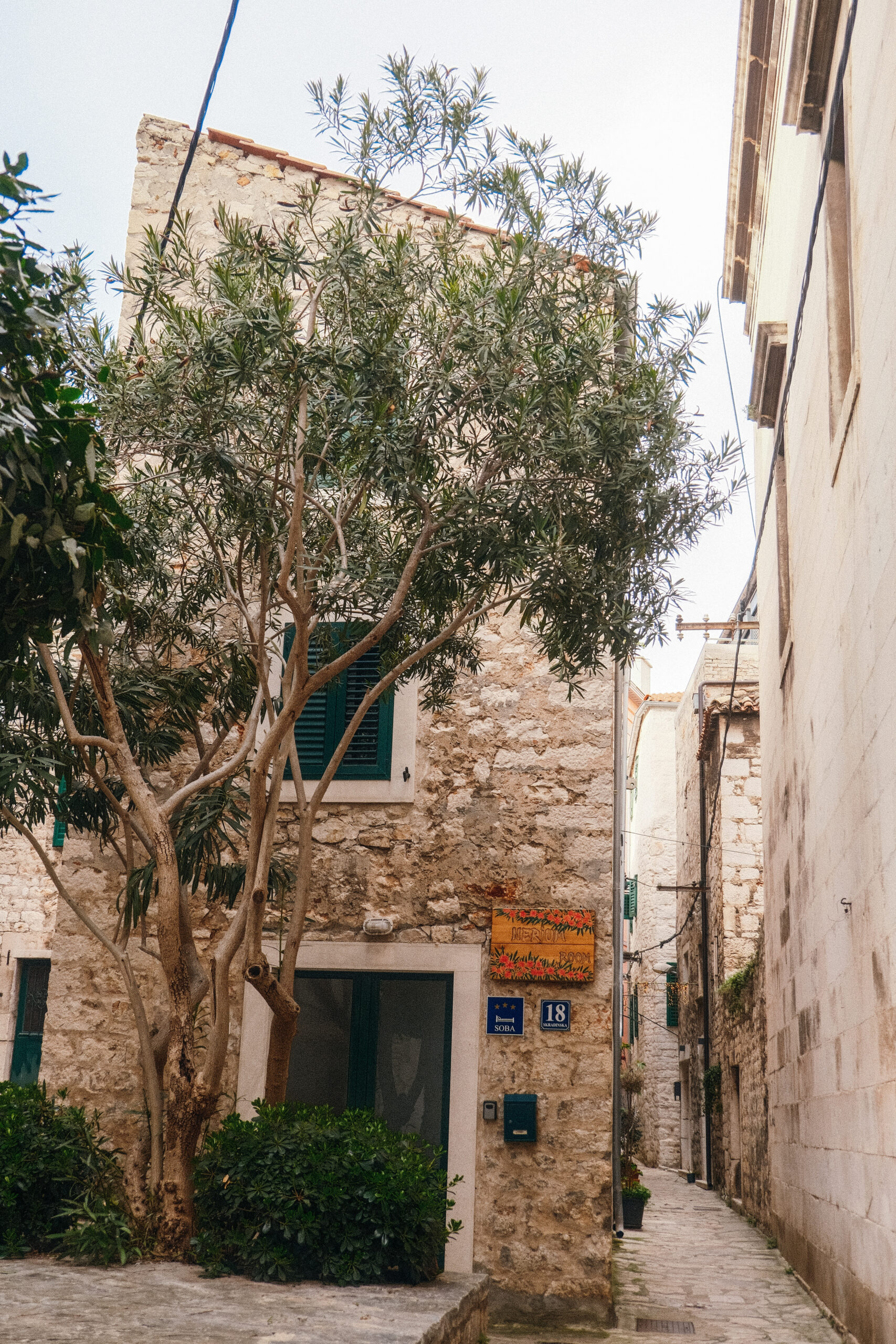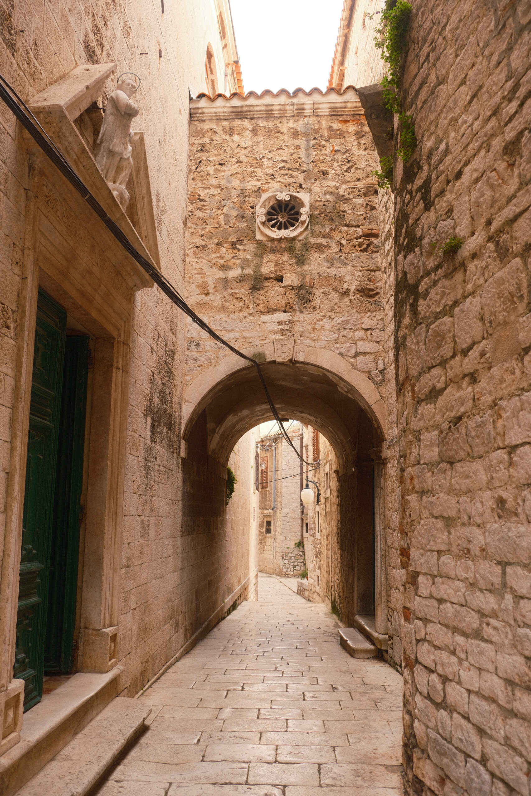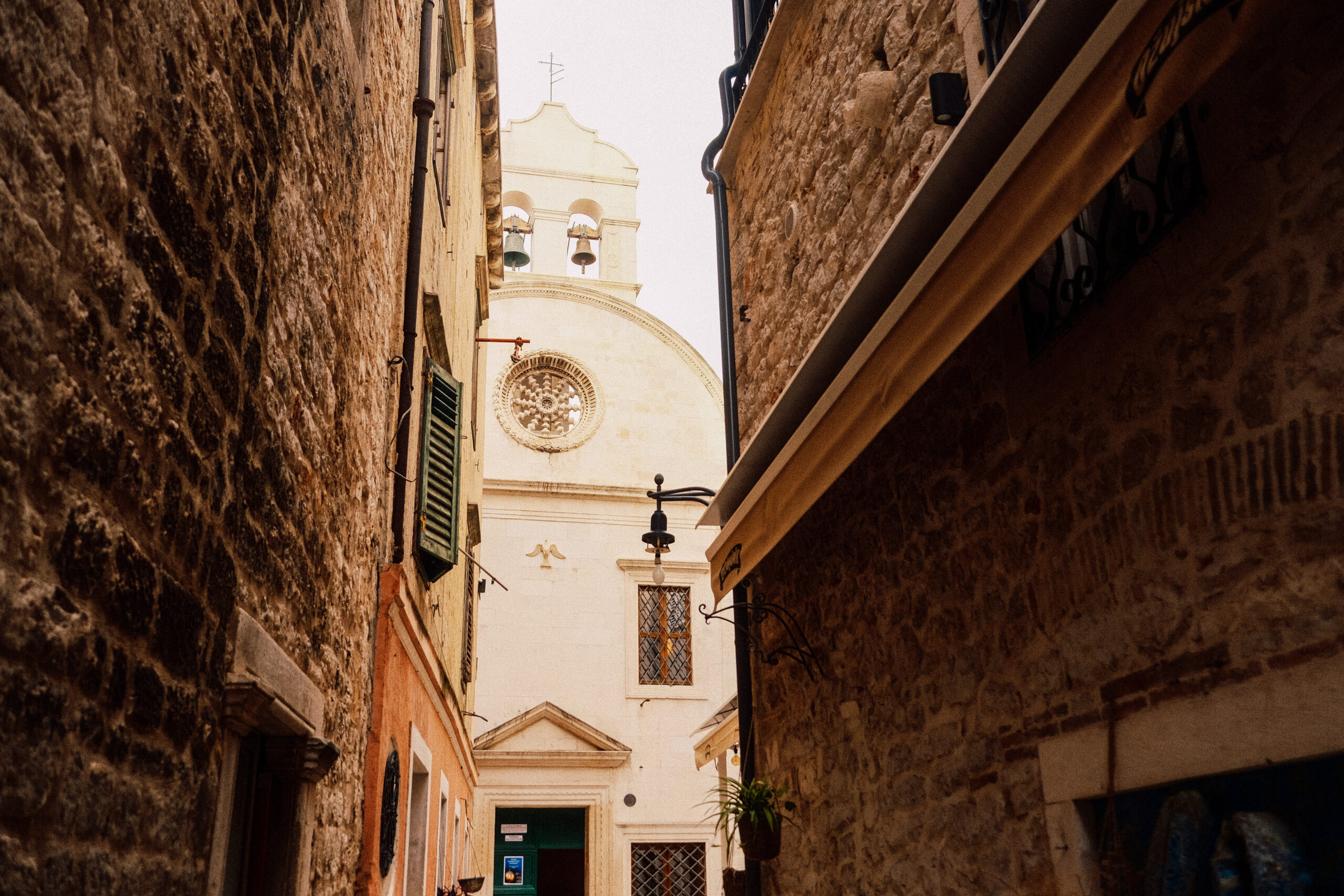 After several hours of driving, we crossed into Croatia without much fanfare. Rather than stay somewhere well-known to first-time tourists, we decided to stop in the old town of Šibenik by the water. The architecture changed dramatically as the deep blue coast appeared— from the soft colors and red tiled roofs of Slovenia to warm stone and a strong Italian influence.