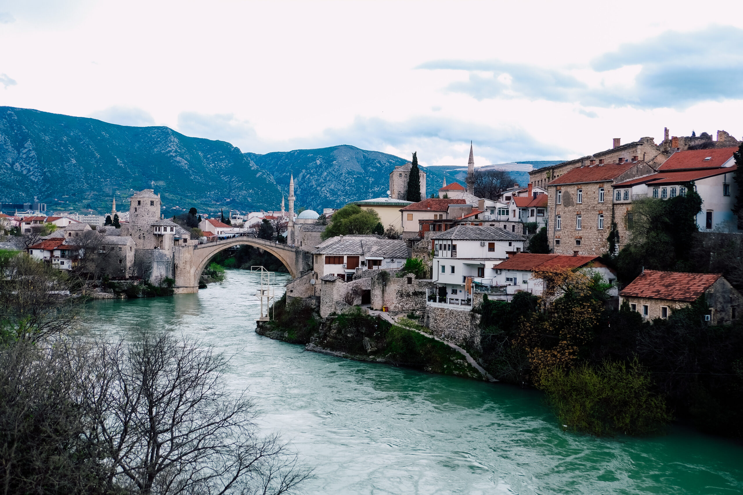 We weren’t sure if we should spend a night in Mostar or just pass through en route elsewhere, but I’m so glad we stayed. Of all the places we visited, Mostar had some of the kindest, most welcoming people. It’s famous for Stari Most, an angular bridge that hovers over Neretva river, which is surprisingly blue-green in hue. I’d seen many photos of Mostar at dusk and couldn’t wait to see it for myself.