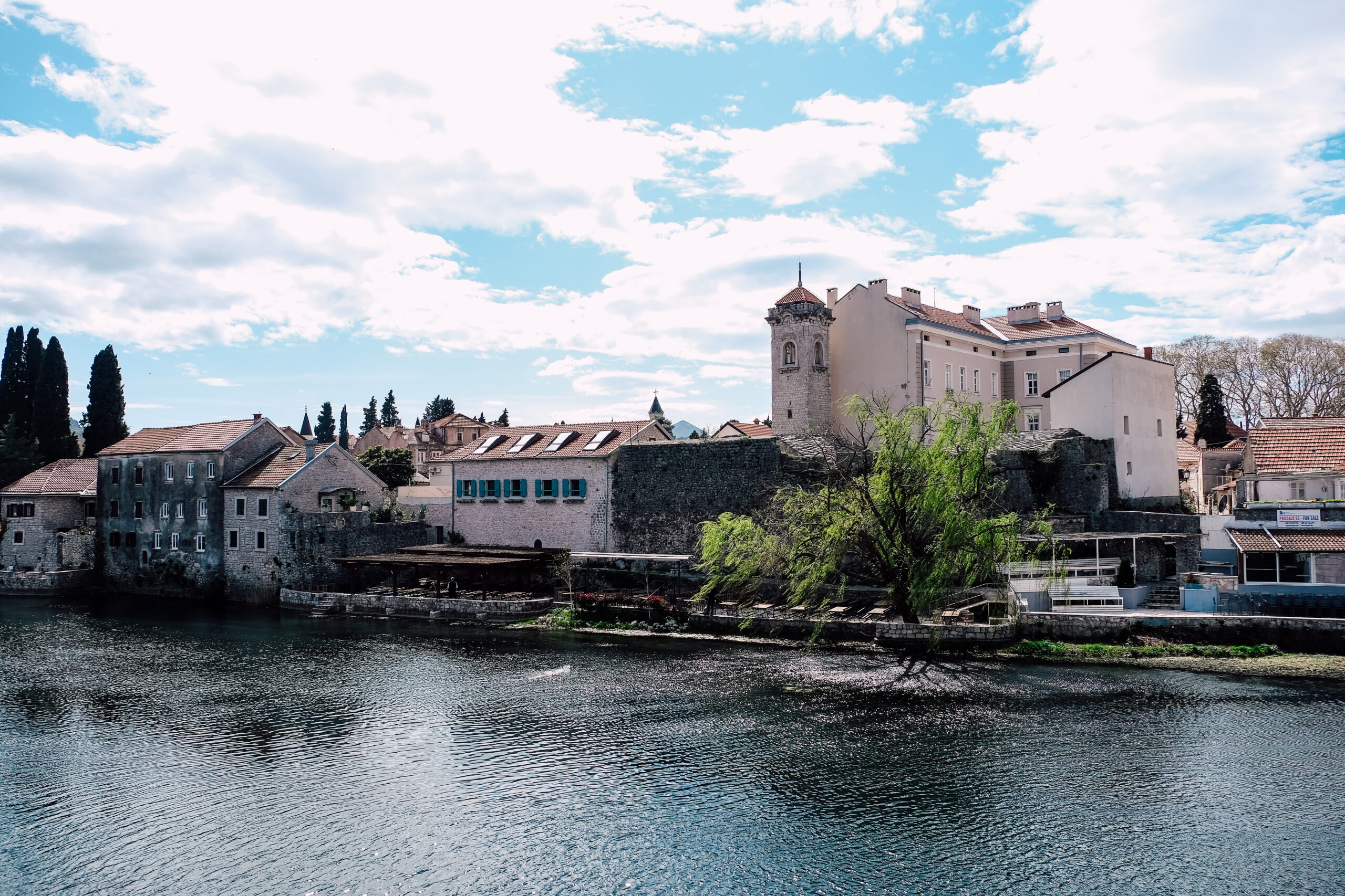 We made our way back toward Croatia and stopped at a couple of scenic locations in Bosnia and Herzegovina so we’d see a bit more of the country. Blagaj is a famous spot where there’s a Dervish monastery. The village dates back to the 1500s, and there are lots of delightful ways to pause here and enjoy the scenery. Trebinje is a beautiful, quiet town with a lovely walk along the Trebišnjica River. We wandered through the local square and park, börek (meat or veg-stuffed filo dough) in hand. There’s not a lot of touristy sites here— but somehow I’ll remember the ambience for quite some time.